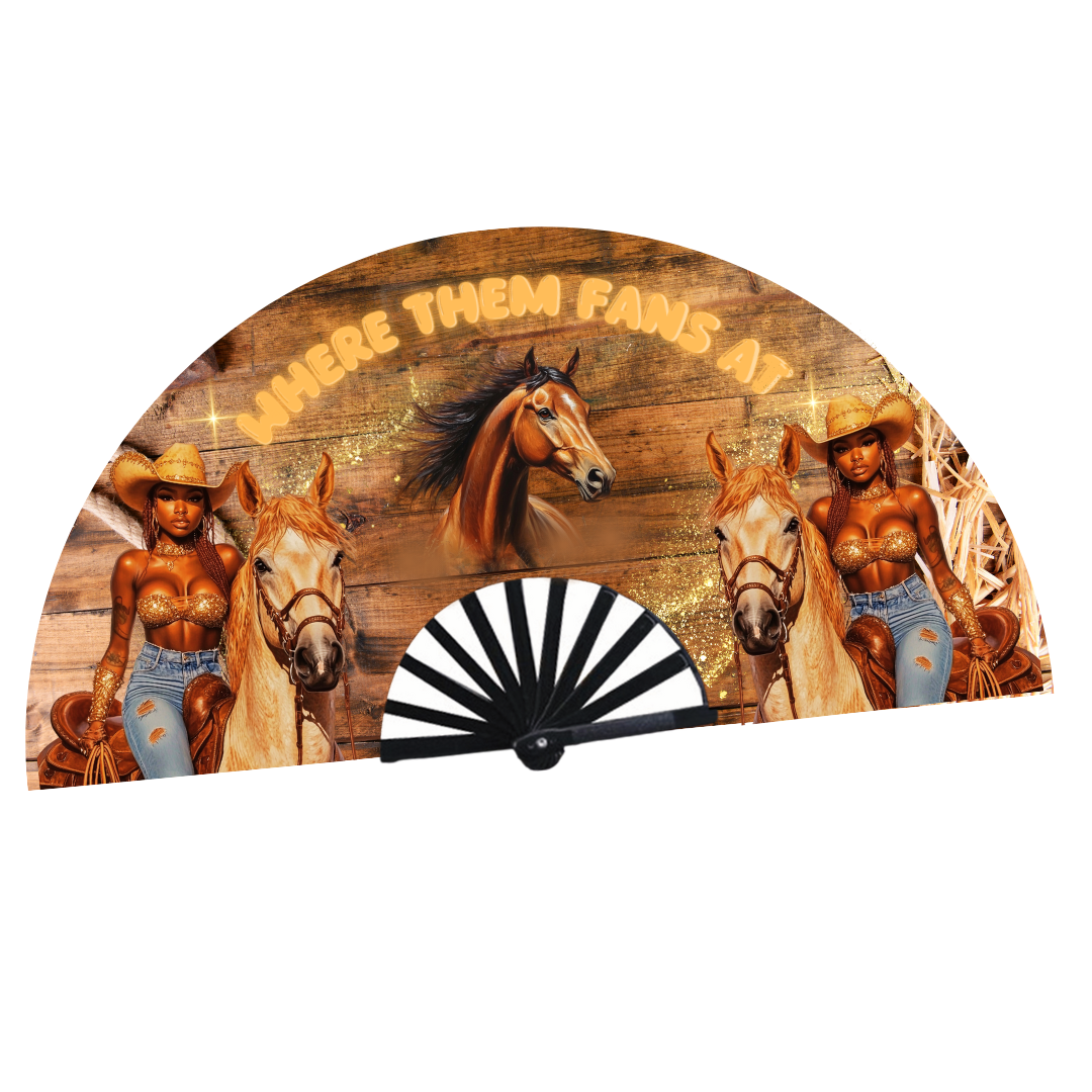 Saddle up and make some noise — you're Trail Ride Ready!**🔥 Our Trail Ride Ready Clack Fans are the ultimate accessory for your next ride, rodeo, country fest, or outdoor event. These oversized folding fans don’t just look good — they CLACK loud and proud, adding attitude and energy to every moment.